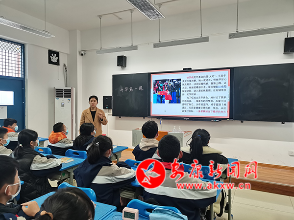 走進(jìn)漢濱初中高新校區(qū)初一年級(jí)23班,語文教師劉麗以“‘虎’力全開,做最好的自己”為題,為學(xué)生們帶來了“開學(xué)第一課”。她以經(jīng)典詩歌《做最好的自己》為切入點(diǎn),隨后通過課件展示了我國冰雪項(xiàng)目運(yùn)動(dòng)員谷愛凌、徐夢桃、金博洋等人在冬奧會(huì)取得的優(yōu)異成績,深入挖掘成績背后他們拼搏奮發(fā)的冬奧精神,引發(fā)了學(xué)生們熱烈響應(yīng),紛紛舉手表達(dá)自己的觀看冬奧會(huì)的感悟體會(huì)。