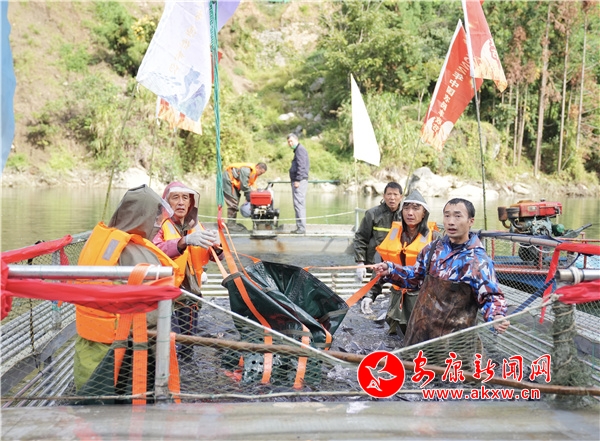 伴隨著生龍活虎的舞獅表演,上午9點30分,起魚儀式正式開始。戰(zhàn)鼓擂擂,響聲震天,起魚手大喊“1、2、3收網(wǎng)”,無數(shù)肥美鮮活的湖魚在網(wǎng)內(nèi)跳躍,引得在場游客陣陣歡呼。在萬眾矚目下,一條身長90厘米,重達20余斤的頭魚產(chǎn)生。在隨后的慈善拍賣活動中,鎮(zhèn)坪縣鹽道酒店以32999元的價格奪得頭魚,拍賣所得款項將用于助學金捐贈給貧困大學生。