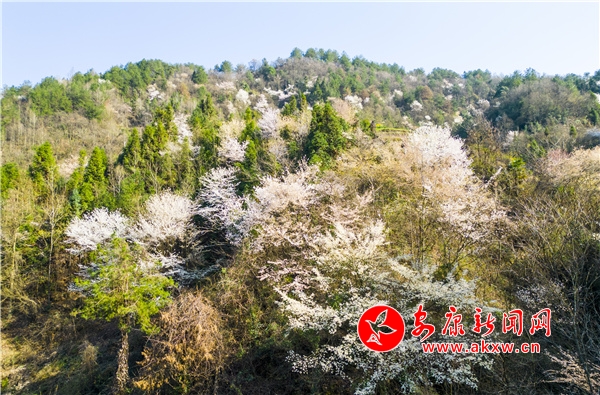 本網(wǎng)訊(記者 李俊 實(shí)習(xí)記者 卜昊天)近日,漢濱區(qū)晏壩鎮(zhèn)漫山的野生櫻桃花在和煦的春風(fēng)中競(jìng)相盛開(kāi)。遠(yuǎn)眺山林,從山腳到山頂次第綻放,山澗幽谷處處粉白,民居藏于其中,宛若世外桃源,起伏的山脈被一簇簇壓滿整個(gè)枝頭的櫻桃花所覆蓋。