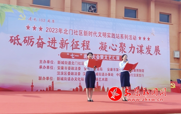 本網(wǎng)訊(記者 趙漪湉)6月27日上午,漢濱區(qū)新城辦北門社區(qū)黨支部聯(lián)合市委政法委、市公路局、市一小、市博物館、漢濱區(qū)委政法委、新城街道辦事處、農(nóng)行安康漢濱支行機(jī)關(guān)黨支部舉辦“砥礪奮進(jìn)新征程 凝心聚力謀發(fā)展”慶祝建黨102周年表彰大會(huì)暨文藝匯演。