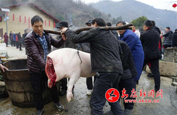 時(shí)至臘八,一大早,馬河社區(qū)的工作人員就開始熬煮臘八節(jié)的傳統(tǒng)美食——臘八粥,邀請游客們在溫暖香甜的粥香中,共度臘八節(jié),迎接新年的到來;顒(dòng)現(xiàn)場,殺年豬、吃庖湯、寫春聯(lián)、趕集市、辦年貨,濃濃的年味彌漫在整個(gè)鄉(xiāng)村。采蓮船、秧歌隊(duì)翩翩起舞,嗩吶聲、鑼鼓聲、聲聲入耳;魔芋豆腐、豆腐干、紅薯粉條、蜂蜜、臘腸……不少來自田間地頭的農(nóng)特產(chǎn)品紛紛亮相,受到游客們的追捧,大家爭相購買。