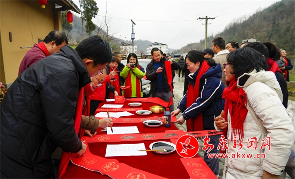 在古色古香的四合院內(nèi),小方桌依次排開,皮影戲精彩亮相。皰湯宴上,各種美食輪流上桌,讓現(xiàn)場游客大飽口福;顒(dòng)還邀請了書法愛好者揮毫潑墨,免費(fèi)書寫春聯(lián),吸引了不少村民前來領(lǐng)取。