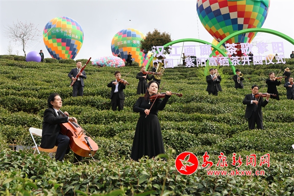 開園儀式有茶山實景演藝、紫陽民歌聯(lián)唱、祭茶神儀式、華服秀等。上午10時,開園儀式在沉浸式交響樂《春之聲》中浪漫開場,樂團成員分布在茶園間,音符隨山風流淌,樂聲與茶山風光交相輝映,觀眾置身茶園,仿若與自然共譜春之樂章。茶山大秀《生生不息》以天地為幕、茶園為臺,采茶號子響徹山谷,7位紫陽民歌手帶來的聯(lián)唱《山河共鳴》,以原生態(tài)唱腔配以舞蹈演員的靈動演繹,唱響茶鄉(xiāng)人民對自然的敬畏與生活的熱愛。整場演出高潮迭起、亮點紛呈,令嘉賓和游客們流連忘返。
