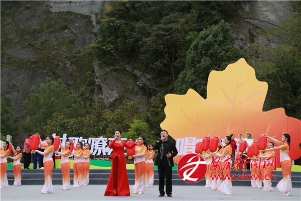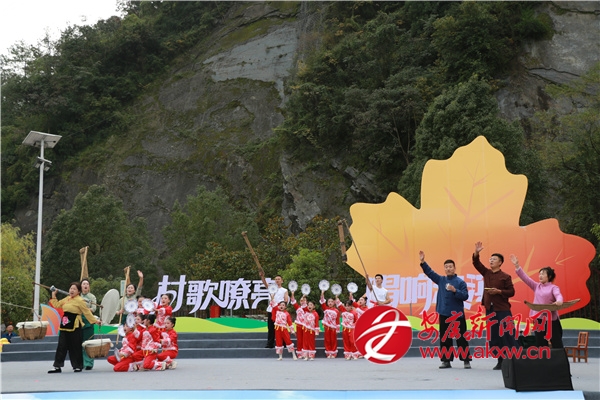 金秋時節(jié)的茨溝鎮(zhèn),萬畝紅葉、層林盡染。伴隨著歡快的鑼鼓聲,茨溝鎮(zhèn)、五里鎮(zhèn)、譚壩鎮(zhèn)三支隊伍輪番登場,不僅獻(xiàn)唱原創(chuàng)村歌,還展示特色產(chǎn)業(yè)、優(yōu)質(zhì)資源與地方文化,紛紛亮出獨具特色的“看家絕活兒”。歌伴舞《村歌飛揚(yáng)》《松壩謠》《幸福歌兒唱起來》唱出了鄉(xiāng)親們的幸福生活;以修建八一水庫為背景的安康歌謠《我來了》引發(fā)會場共鳴;民俗表演《龍的傳人》則將節(jié)目推向高潮。舞蹈、鄉(xiāng)村T臺秀、民俗表演、八岔戲等節(jié)目,或以傳統(tǒng)幽默詼諧的風(fēng)格,或以深情敘述的方式,展現(xiàn)鄉(xiāng)村新生活,為觀眾獻(xiàn)上一場別開生面的視聽盛宴,現(xiàn)場歡呼聲此起彼伏。