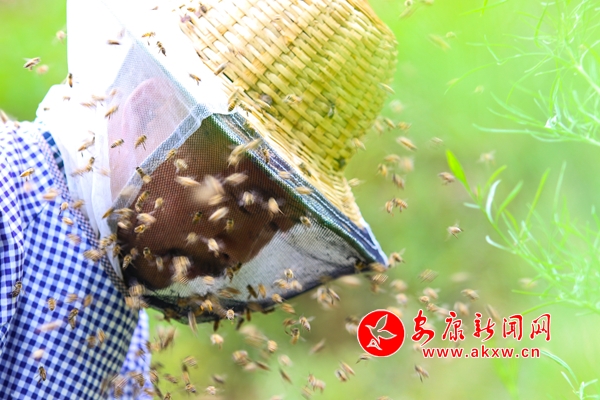 初夏,走進(jìn)漢濱區(qū)茨溝鎮(zhèn)營(yíng)盤埡村四組中華蜂養(yǎng)殖園,青山環(huán)繞,溪水潺潺,百花綻放。河對(duì)岸山坡空地里,一排排密密麻麻、錯(cuò)落有致的蜂箱引人注目!