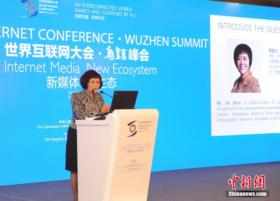 11月19日,財新傳媒總編輯胡舒立在烏鎮(zhèn)舉行的首屆世界互聯(lián)網(wǎng)大會新媒體分論壇上發(fā)言。當(dāng)天,世界互聯(lián)網(wǎng)大會在浙江烏鎮(zhèn)拉開帷幕。 中新社發(fā) 李晨韻 攝aa5安康新聞網(wǎng)
