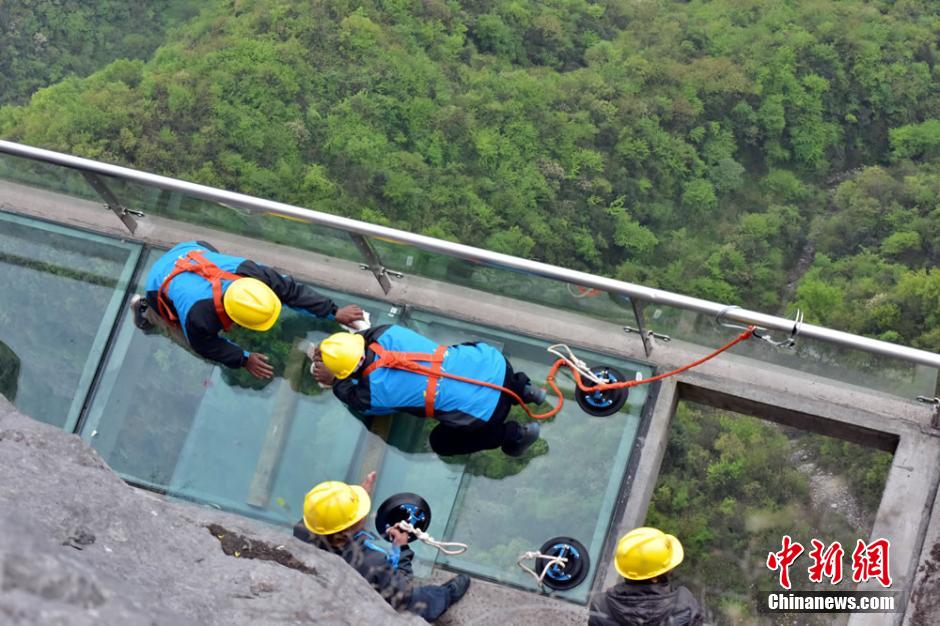 張家界天門山玻璃棧道換“新裝”