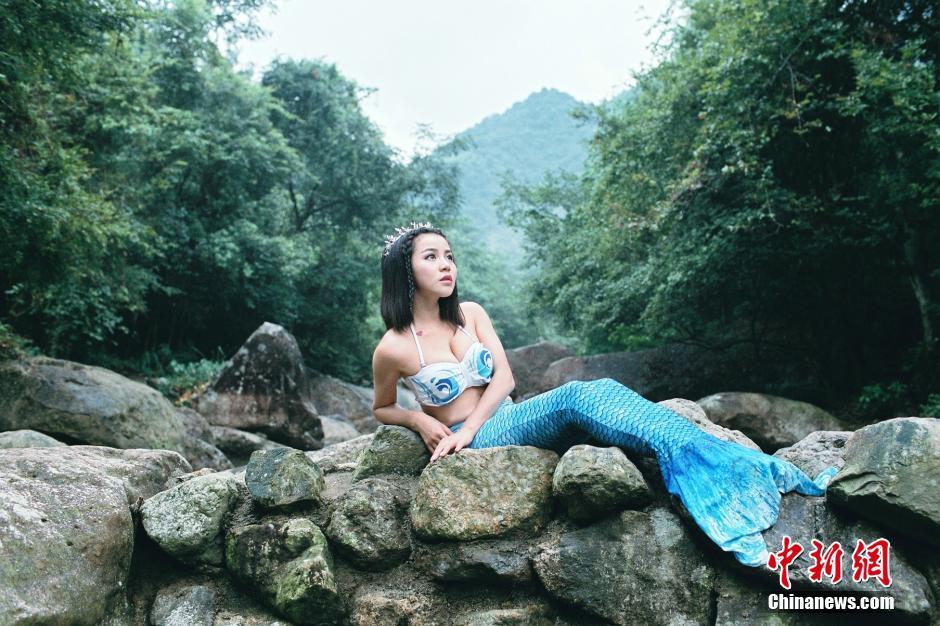 江西龍虎山上演真人版“美人魚(yú)Twins”