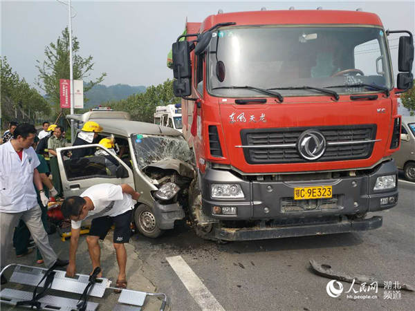 一輛面包車和一輛貨車相撞后,因車型差異較大,面包車車頭直接“鉆”入了貨車前輪處,車輛瞬間變形,面包車駕駛員被困車內(nèi),湖北省十堰消防員緊急營(yíng)救被困駕駛員并將其送醫(yī)救治,目前被困駕駛員已脫離生命危險(xiǎn)。