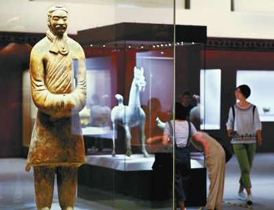 “很多都曾經(jīng)出現(xiàn)在我們的中小學(xué)課本里!敝袊奈锝涣髦行闹魅瓮踯娊榻B,此次展覽展品的來源主要有三個,一部分是剛從美國的《秦漢文明》展撤下來返京,一部分是從首都博物館剛閉幕的《美好中華》展中挪到國博,還有一部分是全國各地征調(diào)的。“很多文物是當(dāng)?shù)氐拿餍俏奈,有些是直接從展線上撤下來的,所以湊齊展出非常不易。”