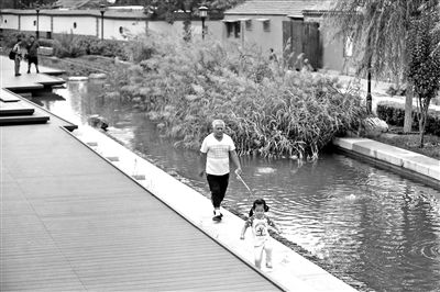 浮雕旁邊還搭建了一些木質(zhì)平臺,居民可以休憩散步。姚文國告訴北青報記者,這條景觀河道,不僅還原了古河道走向,還成為周邊居民的休閑場所,實現(xiàn)生態(tài)環(huán)境提升!跋乱徊綄Τ吻逑麻l遺址的局部清理修復(fù),國家文物局已經(jīng)批復(fù)了修復(fù)方案,未來將原址原風貌地展示!