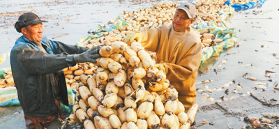 初冬時節(jié),江蘇省灌云縣的4.3萬余畝藕塘迎來采藕季。RzW安康新聞網(wǎng)