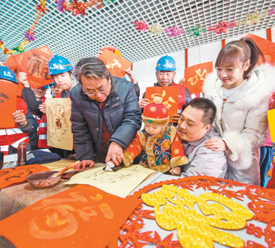 2月7日,北京木版年畫匠人張闊正為北京建工集團總承包部A2工程項目部的工人們現(xiàn)場印制生動的狗年木版年畫。再過幾天就要過年了,北京市文聯(lián)組織藝術家們?yōu)檫@些北京副中心的建設者們送上春聯(lián)年畫和祝福。(記者 徐燁 攝) wvQ安康新聞網(wǎng)