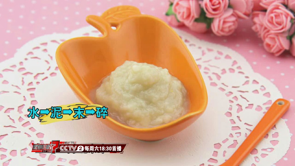 晁爽說(shuō):“從輔食的添加來(lái)講,應(yīng)該是從泥糊狀食物開(kāi)始,叫‘水泥末碎’。寶寶生下來(lái),先喝的是奶或者水,它是液體的。然后,要逐漸轉(zhuǎn)化成固體食物,經(jīng)過(guò)泥、末、碎的過(guò)程。泥糊狀食物是人類營(yíng)養(yǎng)史上不可逾越的一個(gè)階段,它能夠訓(xùn)練寶寶的吞咽功能,同時(shí)能夠提供寶寶所需要的一部分營(yíng)養(yǎng),我們建議,除了添加米粉、菜泥以外,如果要添水果,應(yīng)該以果泥的形式添加!
