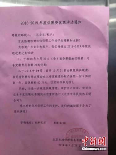 某小區(qū)內(nèi)張貼的收取供暖費通知。中新網(wǎng)孫悅 攝