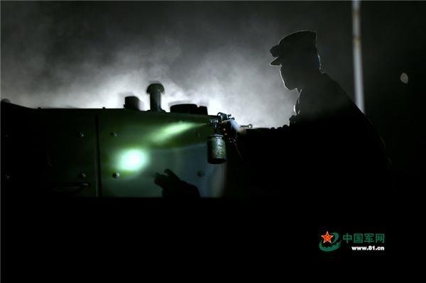 1:00,一名戰(zhàn)士正在為戰(zhàn)車涂裝。為了保障備戰(zhàn)閱兵活動,該方隊官兵吃住在車場,連續(xù)奮戰(zhàn)3天3夜,完成了原計劃8天的涂裝工作量。