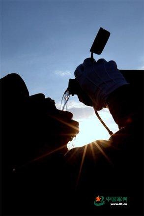 14:00,一名戰(zhàn)士正在飲水。當天中午,部分乘員早早就開始加班強化訓練。