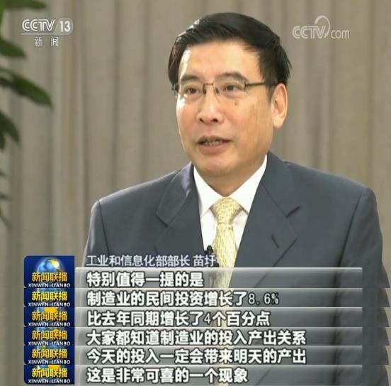 日前,工業(yè)和信息化部部長苗圩接受本臺記者專訪表示,今年前八個月工業(yè)經(jīng)濟(jì)運行穩(wěn)定,制造業(yè)亮點頗多,下一步將切實降低中小企業(yè)負(fù)擔(dān),促進(jìn)金融支持實體經(jīng)濟(jì)的發(fā)展。
