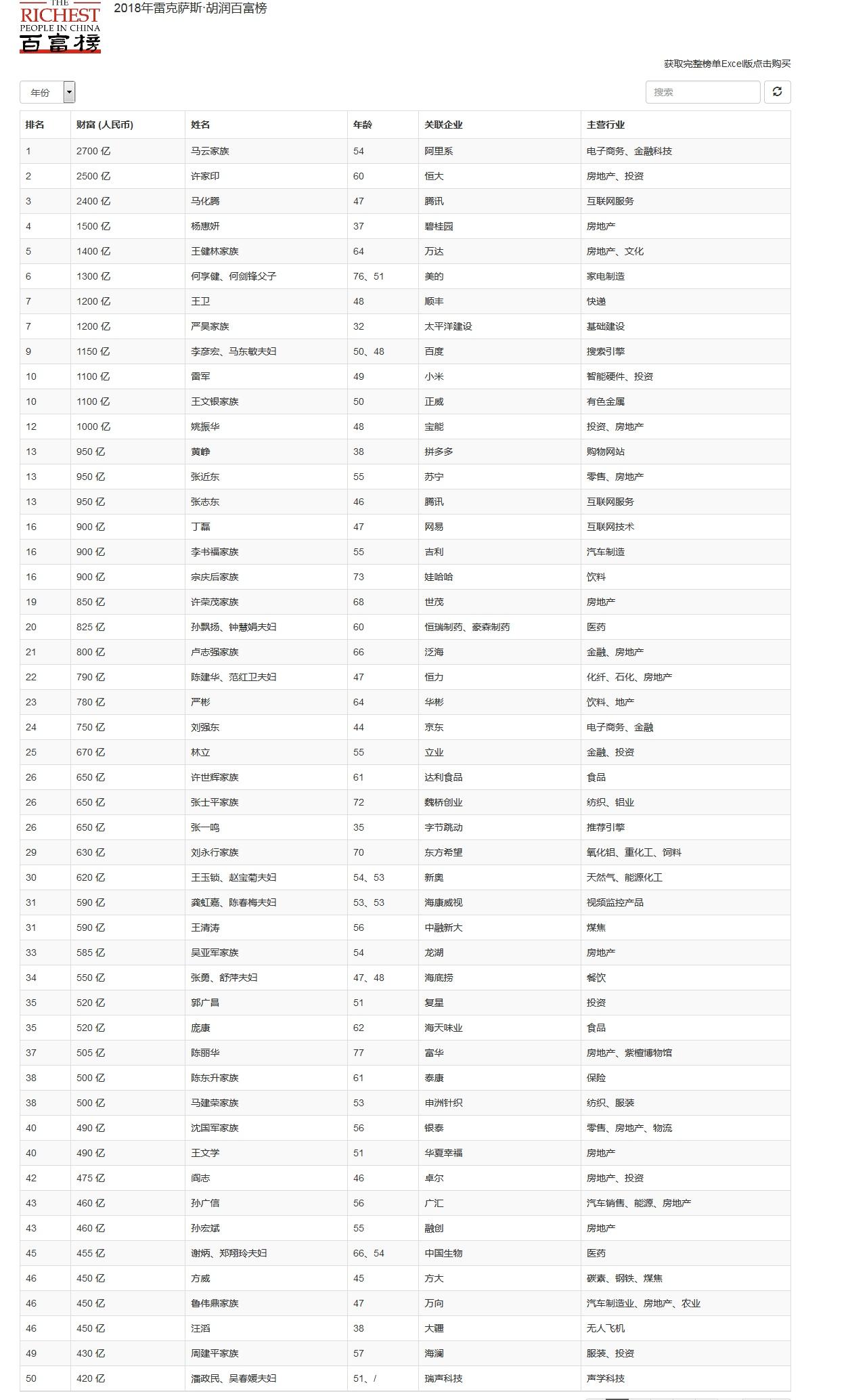 2018胡潤百富榜:許家印身家2500億跌至第二 馬云笑登榜首