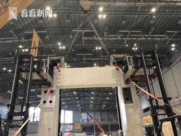 首屆中國國際進口博覽會最大的展品,金牛座龍門銑床今天龍門構架完成,預計下周二整個設備將完成安裝。