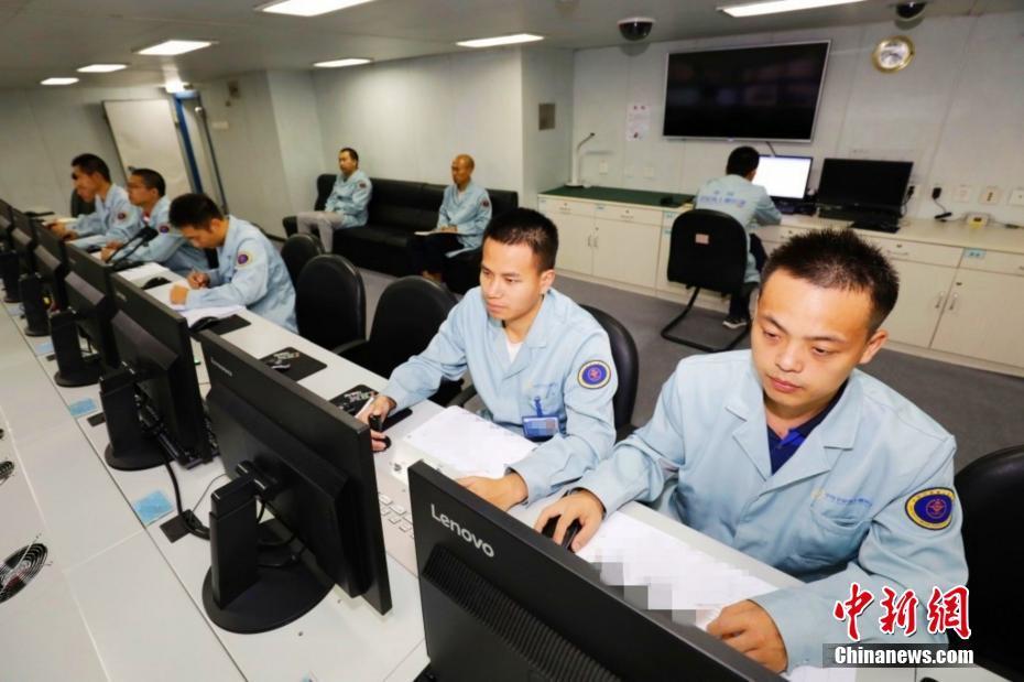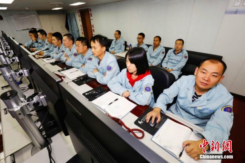 遠望3號船副船長王小兵介紹說:“任務(wù)前,我們做了大量軟硬件技術(shù)狀態(tài)驗證、信號特征分析等工作,任務(wù)中,還特別關(guān)注目標信號變化趨勢以及各類重要事件,及時準確下達了調(diào)度指揮口令,確保了指揮流暢、上下協(xié)同、任務(wù)圓滿!眻D為測控系統(tǒng)崗位人員嚴陣以待。 高超、何露東杰/文 何露東杰 攝