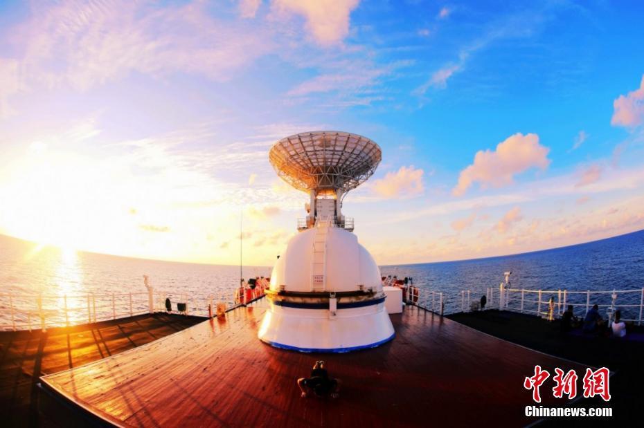 火箭升空飛行20多分鐘后,遠望3號船在距離祖國萬里之遙的大洋深處及時發(fā)現(xiàn)并成功捕獲目標,船載USB統(tǒng)一測控系統(tǒng)迅速接收到火箭遙測參數(shù),并及時處理傳送至西安衛(wèi)星測控中心、西昌衛(wèi)星發(fā)射中心,為中心判斷火箭飛行狀態(tài)提供重要依據(jù);兩套船載航天測控設(shè)備同時對火箭及衛(wèi)星開展測量工作,并及時、準確計算向西安衛(wèi)星測控中心提交了高精度數(shù)據(jù),整個海上測控過程持續(xù)近10分鐘,為火箭三級二次關(guān)機、星箭分離等一系列關(guān)鍵動作提供了有力測控支撐。圖為深夜,遠望3號船精準測控。 高超、何露東杰/文 亓創(chuàng) 攝