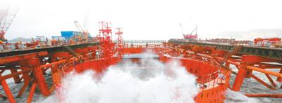 圖為施工中的平潭海峽公鐵兩用大橋。