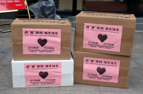 這批愛心包所需善款由在外樂商、陜西安康博泰投資有限公司董事長趙章漢捐贈,并指明要捐贈給家鄉(xiāng)樂清市人民醫(yī)院的醫(yī)護人員。在此之前,趙章漢曾多次為多地抗疫一線捐資,其中分別為陜西省安康市捐贈價值8余萬元抗疫物資和現(xiàn)金100萬元,為溫州捐贈現(xiàn)金166666.66元,寓意六六大順,為家鄉(xiāng)樂清就捐款現(xiàn)金12萬元,諧音“要愛”,寓意奉獻一份愛心。“我是樂清人,一直很關(guān)心家鄉(xiāng)在抗疫一線的工作人員,尤其是醫(yī)務(wù)人員。”趙章漢接受電話采訪時說,“我也是盡自己一份微薄之力,通過這一份真情,一份愛心,一聲祝福,祝愿醫(yī)護人員平安!祝福一線戰(zhàn)疫人員身體健康!祈愿感染患者堅定信心、早日康復(fù)!”