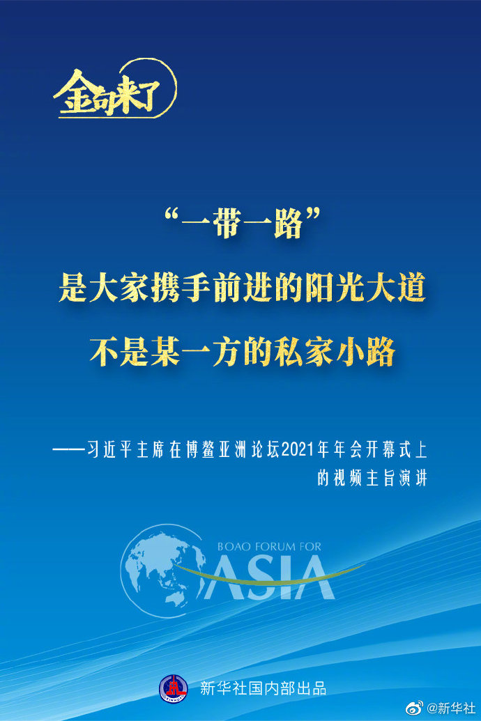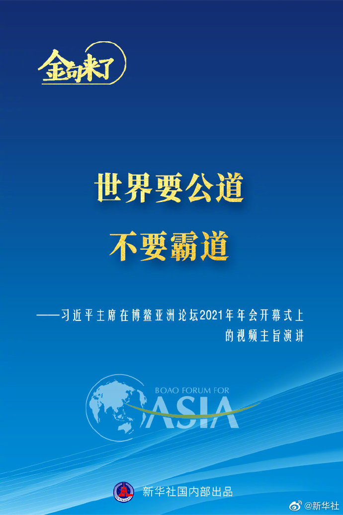 4月20日,習(xí)近平主席在博鰲亞洲論壇2021年年會(huì)開(kāi)幕式上以視頻方式發(fā)表主旨演講。一起來(lái)看演講金句! JDu安康新聞網(wǎng)