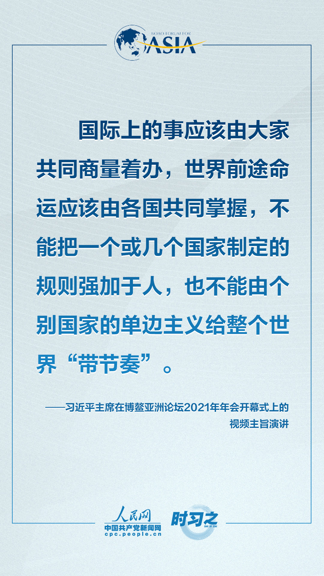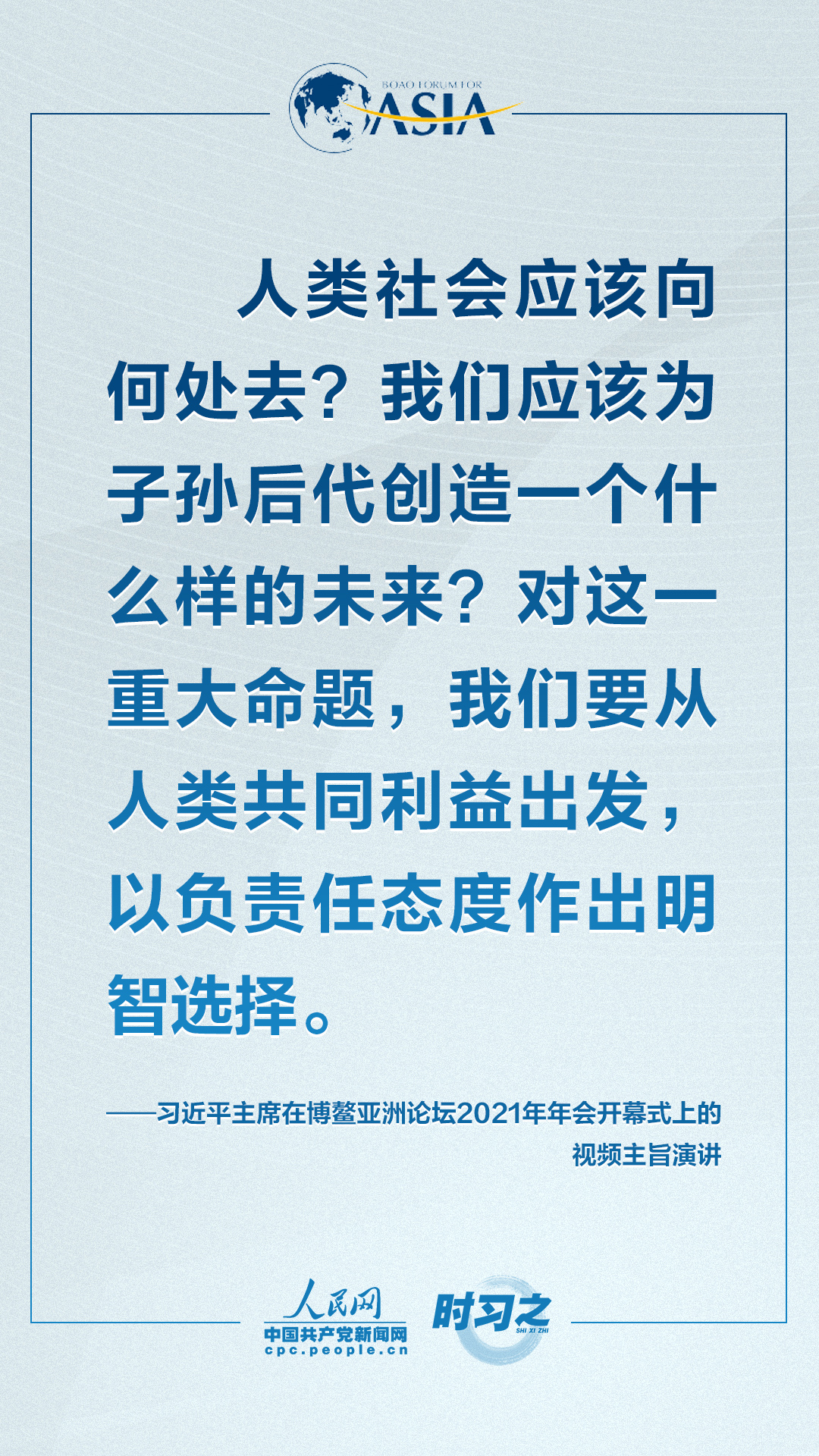 4月20日上午,博鰲亞洲論壇2021年年會開幕式在海南博鰲舉行,國家主席習近平以視頻方式發(fā)表題為《同舟共濟克時艱,命運與共創(chuàng)未來》的主旨演講。面對“人類社會應該向何處去?我們應該為子孫后代創(chuàng)造一個什么樣的未來?”的重大命題,習近平這樣對世界說。qTz安康新聞網