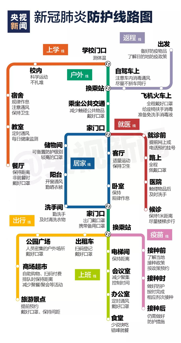 開學(xué)臨近,疫情防控又到了關(guān)鍵時期,返程路上、校園里、外出途中該如何做好防護?這張“線路圖”給你答案。