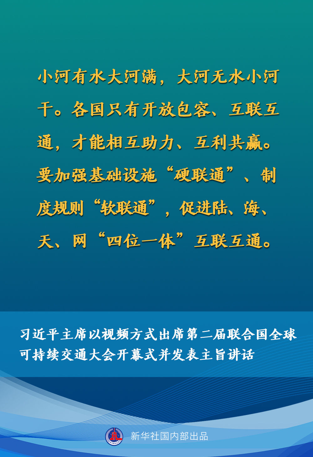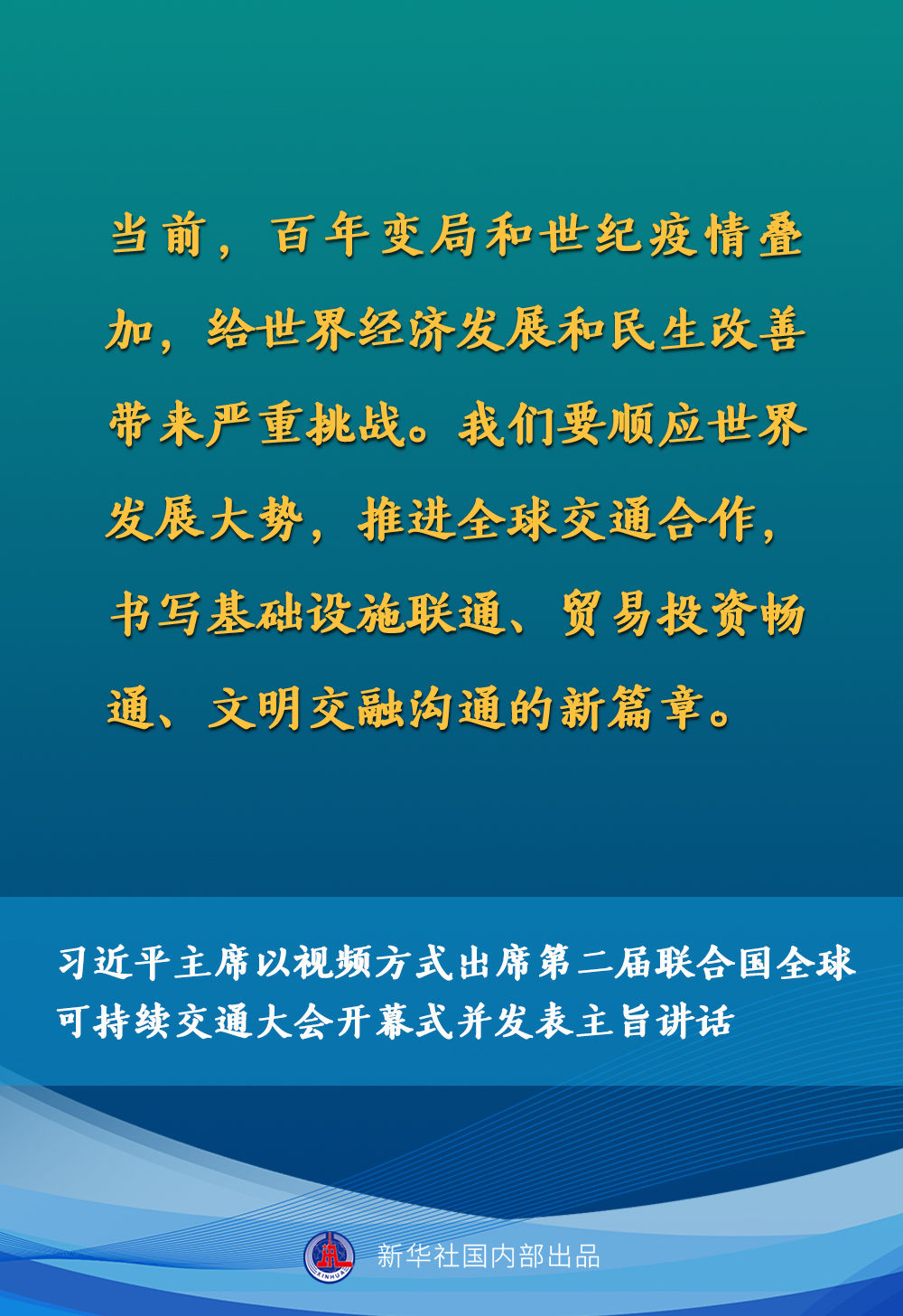 國(guó)家主席習(xí)近平10月14日晚以視頻方式出席第二屆聯(lián)合國(guó)全球可持續(xù)交通大會(huì)開(kāi)幕式并發(fā)表主旨講話(huà)。講話(huà)有哪些主要內(nèi)容,一起來(lái)看。 xe8安康新聞網(wǎng)