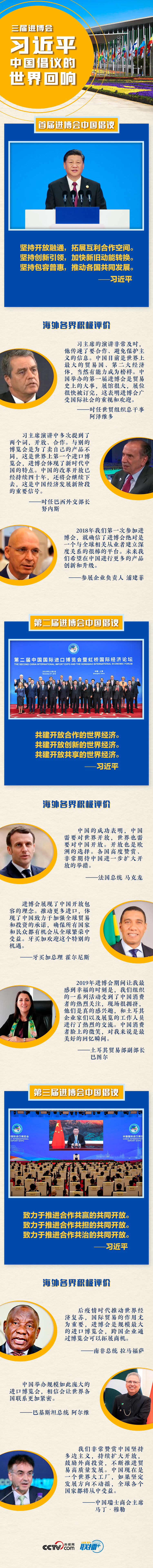 在歷屆進(jìn)博會(huì)上,習(xí)近平主席都提出了推動(dòng)建設(shè)開(kāi)放型世界經(jīng)濟(jì)的中國(guó)倡議,宣布了中國(guó)擴(kuò)大對(duì)外開(kāi)放的一系列務(wù)實(shí)舉措,贏得國(guó)際社會(huì)的廣泛認(rèn)同。