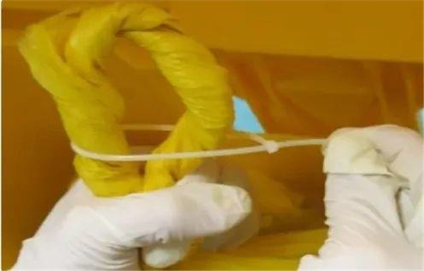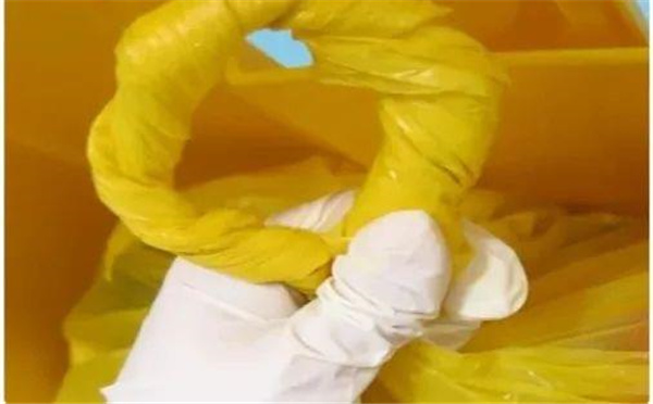 當(dāng)盛裝的醫(yī)療廢物達(dá)到包裝物或者容器的3/4時(shí),可以采用這種有效的封口方式,家里的普通垃圾袋也適用哦。