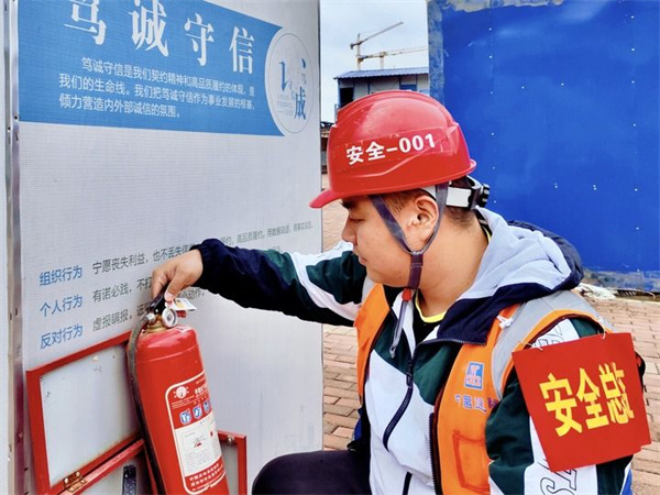 2023年4月30日,中建三局云南分公司安全總監(jiān)蒲札在進(jìn)行消防檢查。新華社發(fā)(王威 攝)
