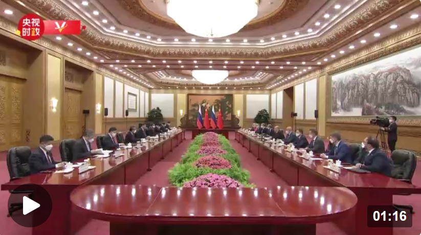 米舒斯京說:“尊敬的習(xí)近平主席,首先請允許我向您轉(zhuǎn)達俄羅斯聯(lián)邦總統(tǒng)普京的親切問候和良好祝愿。今年3月份,他同您在莫斯科舉行的會談至今仍使他倍感親切。我們非常珍視同中國的睦鄰友好合作伙伴關(guān)系。”