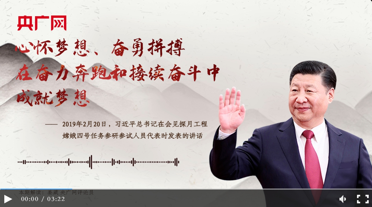 這句話出自2019年2月20日習近平總書記在會見探月工程嫦娥四號任務參研參試人員代表時發(fā)表的講話。