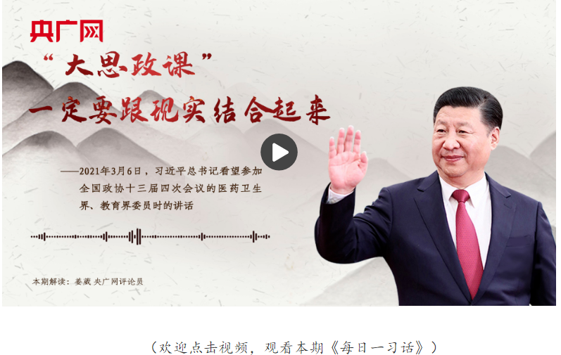 這句話出自2021年3月6日習(xí)近平總書記看望參加全國(guó)政協(xié)十三屆四次會(huì)議的醫(yī)藥衛(wèi)生界、教育界委員時(shí)的講話。