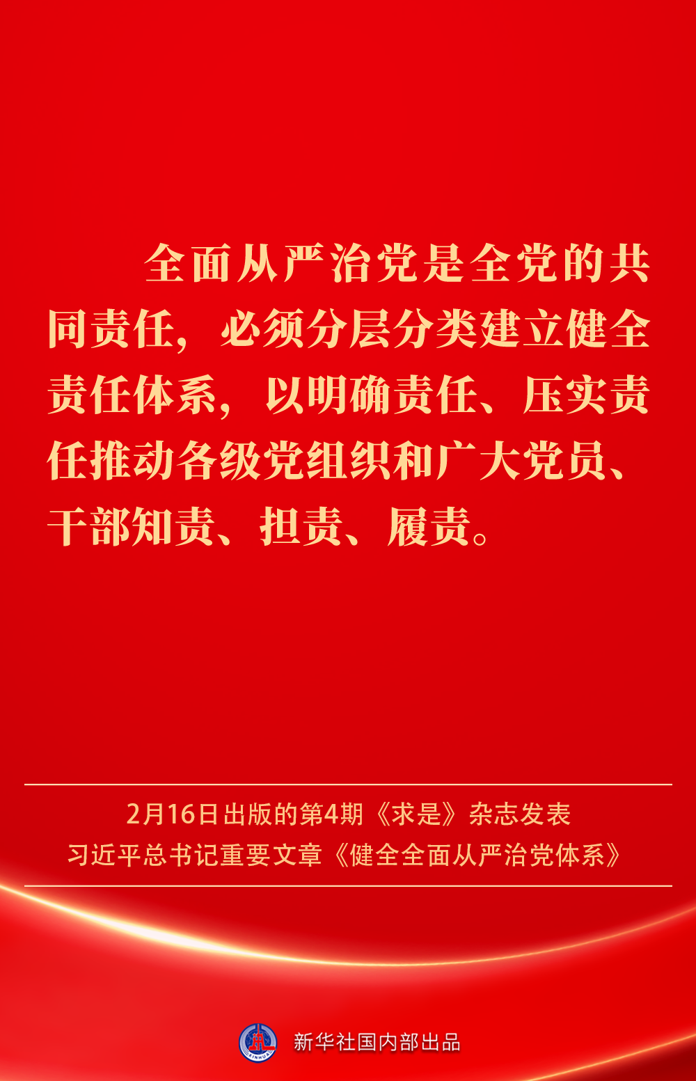 2月16日出版的第4期《求是》雜志發(fā)表習(xí)近平總書記重要文章《健全全面從嚴(yán)治黨體系》。如何進(jìn)一步健全要素齊全、功能完備、科學(xué)規(guī)范、運行高效的全面從嚴(yán)治黨體系?習(xí)近平總書記闡明要旨——Evk安康新聞網(wǎng)