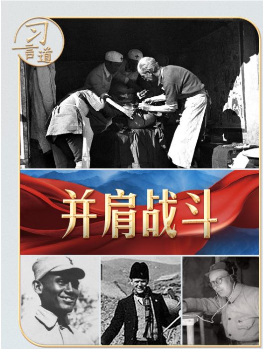 印度醫(yī)生柯棣華、法國(guó)醫(yī)生貝熙葉、德國(guó)人約翰·拉貝、丹麥人辛德貝格、英國(guó)人林邁可、國(guó)際主義戰(zhàn)士漢斯·希伯、蘇聯(lián)飛行大隊(duì)長(zhǎng)庫(kù)里申科、美國(guó)“飛虎隊(duì)”......他們的事跡,習(xí)近平總書記曾多次動(dòng)情講述?倳涍在國(guó)內(nèi)外重要場(chǎng)合為曾幫助和支持中國(guó)抗戰(zhàn)的國(guó)際友人頒獎(jiǎng),向他們致敬。