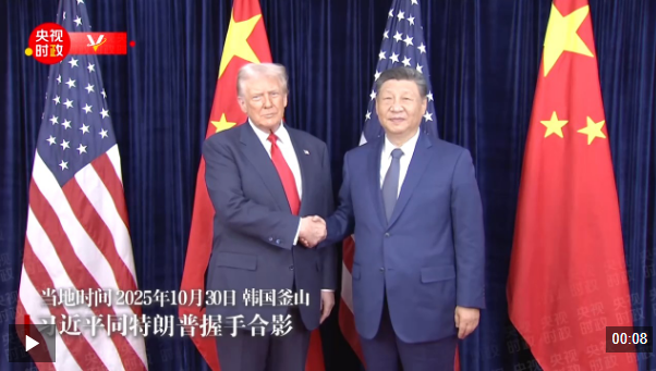 當?shù)貢r間10月30日中午,中美元首會晤開始前,習近平同特朗普握手合影。