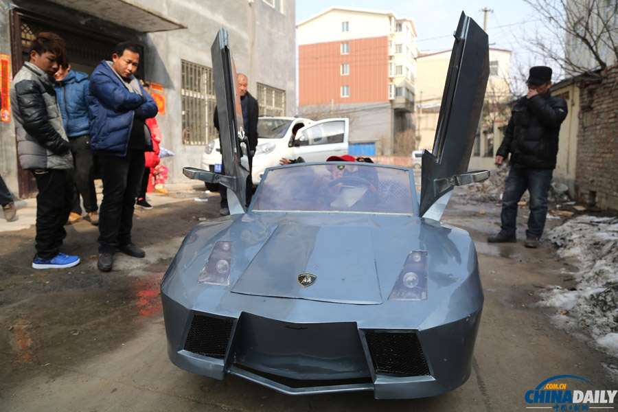 2014年2月19日,河南省鄭州市二七區(qū),一輛手工自制的跑車吸引了不少市民觀看。