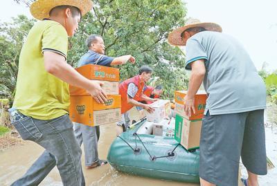 臺風“山竹”逐漸減弱,各地各部門—— 做好災后救助 有序恢復重建 9月18日,在廣東省陽江市陽春市,工作人員把食物搬運到筏子上,準備分發(fā)給受困村民。目前,……