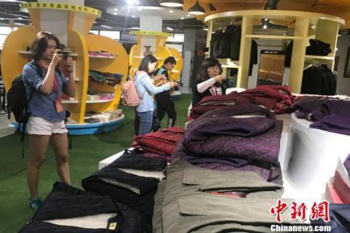 在廣河縣電商創(chuàng)業(yè)孵化園中,由當(dāng)?shù)厝嗽凇昂髲S”中制作的服飾在“前店”中受民眾熱捧。艾慶龍攝 (脫貧攻堅(jiān)在行動(dòng))甘肅廣河傳統(tǒng)“針線活”走俏 農(nóng)婦掙錢顧家“兩……