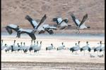 新華社記者 張汝鋒攝 1月1日,西藏拉薩市林周縣卡孜水庫附近的黑頸鶴。 林周縣是著名的黑頸鶴越冬地,……