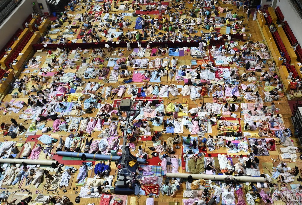 2015年6月29日晚,湖北武漢,當(dāng)?shù)刈罡邭鉁剡_(dá)35度,華中師范大學(xué)特地開(kāi)放體育館讓學(xué)生納涼過(guò)夜。當(dāng)夜10時(shí)許,體育館內(nèi)已睡滿了1000多名學(xué)生,還不斷有帶著席子的學(xué)……