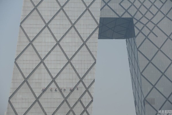 2015年4月9日消息,北京,近日有央視記者發(fā)微信說,央視新址大樓正在開始建成以來的首次外里面清洗,清洗費(fèi)用50萬元人民幣,耗時(shí)需要40天。圖為在央視大樓的外吊……