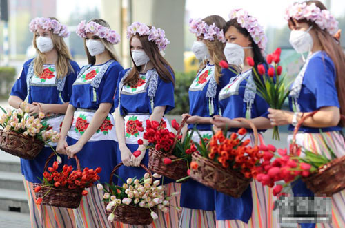 南京街頭靚麗“花仙子” 派發(fā)郁金香倡導(dǎo)綠色生活