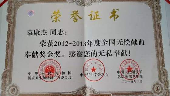 全國無償獻(xiàn)血志愿服務(wù)二星級獎、安康學(xué)院學(xué)生:朱子昊(右)