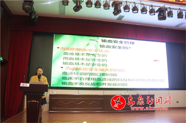 本次培訓(xùn)特別邀請(qǐng)了西安交通大學(xué)第一附屬醫(yī)院輸血科主任王寶燕教授,她結(jié)合自身多年工作經(jīng)驗(yàn),就《臨床輸血流程管理和臨床案例分析》進(jìn)行了深入細(xì)致的講解。安康市中心醫(yī)院輸血科禹梅老師從血液管理、成分血的輸注、評(píng)估等方面做了《臨床輸血實(shí)踐與控制》的精彩闡述。安康市中心血站副站長李宏就近年來全市臨床輸血質(zhì)量管理專項(xiàng)督查中存在的問題進(jìn)行了一一剖析,通報(bào)了各臨床用血單位無償獻(xiàn)血募集指標(biāo)完成的情況。